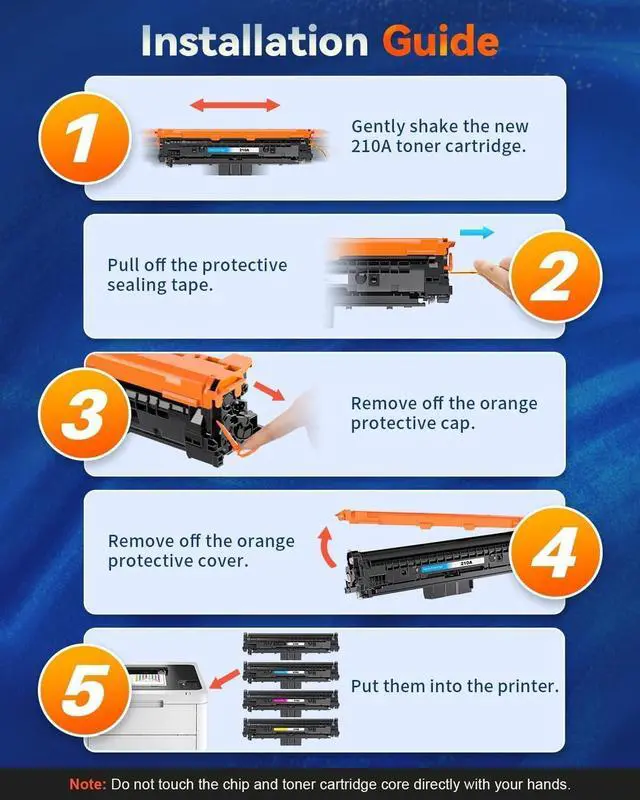 With Chip:Skydo 210A toner cartridge is equipped with the latest chip which is instantly recognised by the printer without the need to transfer the chip from the original hp 210A toner cartridge 4pack or 210X toner cartridge into it. Bringing you a convenient printing experience.