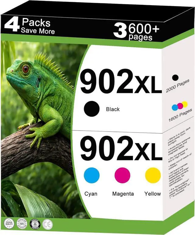 Complete 4-Color Value Pack: Includes 1 Black, 1 Cyan, 1 Magenta, and 1 Yellow 902XL high-yield ink cartridges (equivalent to T6M14AN / T6L86AN / T6L90AN / T6L94AN), providing everything you need for vibrant, full-color printing.