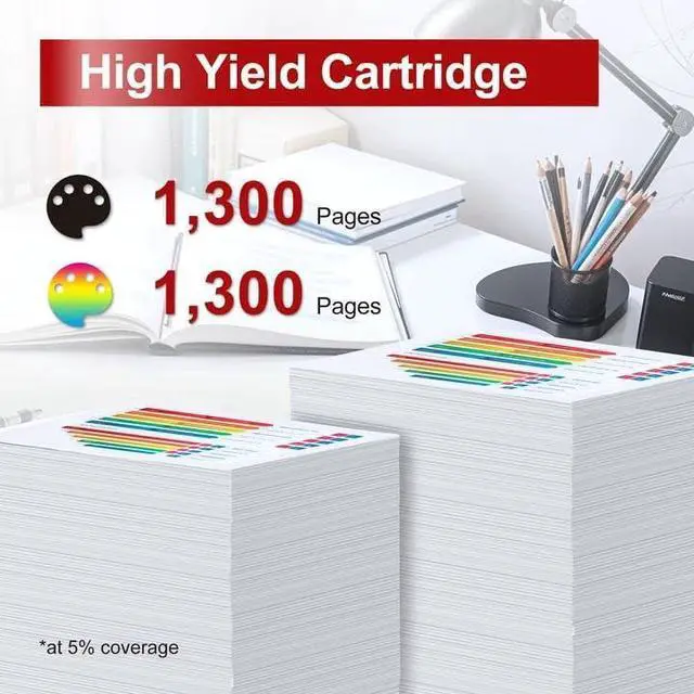 The Canon 075 toner cartridges 4-pack includes one black cartridge (yields ~1,300 pages) and three color cartridges (each yields ~1,300 pages), providing high-volume printing with consistent quality.