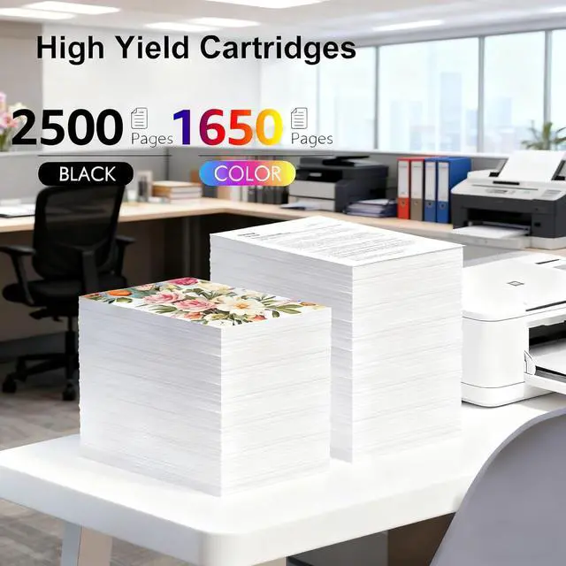 Exceptional Page Yield for Less: Boast impressive page output based on 5% coverage: up to 2,500 pages per 923XL 923e black cartridge and 1,650 pages per 923XL 923e color cartridge. Say goodbye to frequent cartridge replacements and less time on reorders.