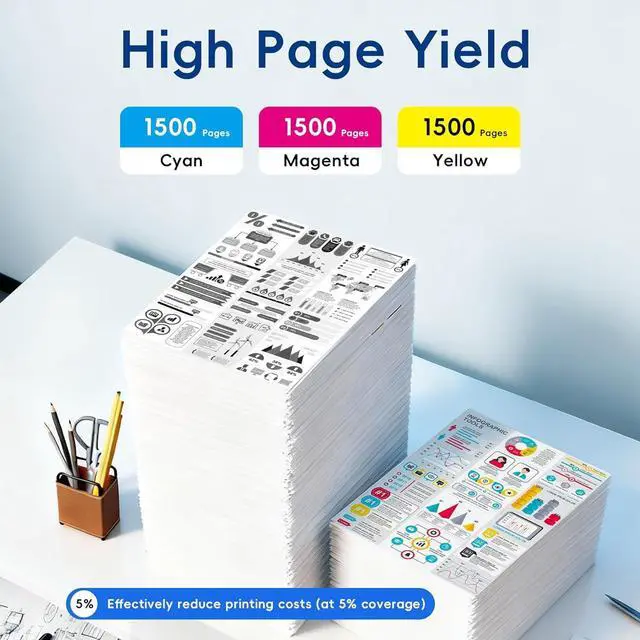 High Page Yield: 1500 pages per color 951XL ink cartridges (Letter A4, at 5% coverage)