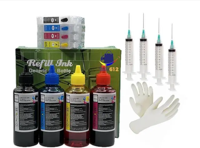 PRINTERWORLD Refillable Ink Cartridges 822XL T822XL with Single-use Chip +400ml Ink replacement EP 822XL T822XL for Workforce Pro WF-3820 WF-4820 WF-4830 WF-4834 Printers New Sealed Non OEM. Condition is "New". Please buy Cartridge according to your printer cartridge number Package includes: 4 Refillable ink cartridges with auto reset chips SETS INK EPSON 100ML 1 BLACK 1CYAN 1MAGENTA 1YELLOW Cartridge colors included: Black, Cyan, Magenta, Yellow