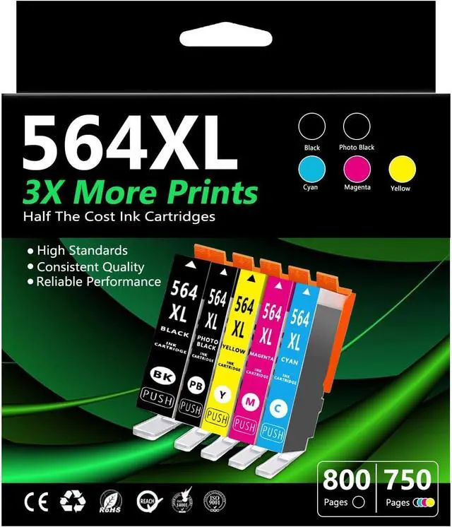 In this Package: 5 Pack 564XL Ink Cartridges set includes 1 x 564XL Black ink cartridge,1 x 564XL Cyan ink cartridge,1 x 564XL Magenta ink cartridge,1 x 564XL Yellow ink cartridge,1 x 564XL Photo Black ink cartridge