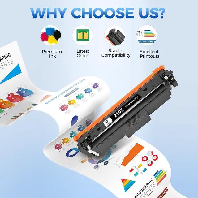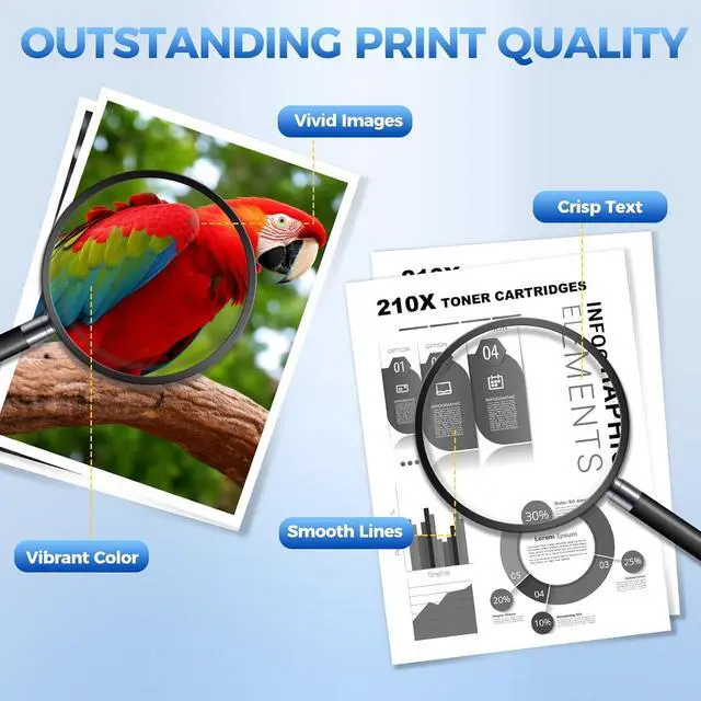 Superior Printouts: 210X toner cartridges are compatible with HP 210X W2100X 210A W2100A toner cartridges, working seamlessly with your printer. Every text comes out crisp and bold, photos boast vibrant, true-to-life colors, and even tiny fonts and intricate details are consistently super sharp
