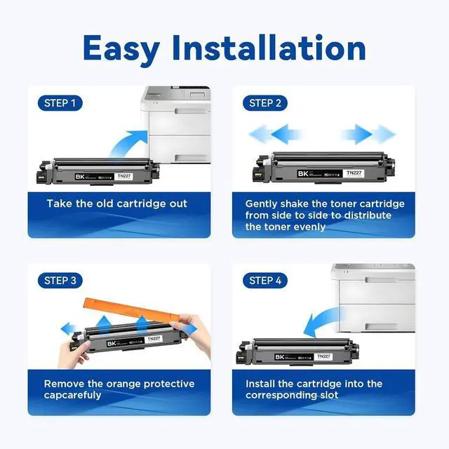 Excellent Performance: Our Compatible TN 227 TN-227 TN227BK/C/M/Y high yield toner cartridges deliver superior printing results with vivid colors and clear prints