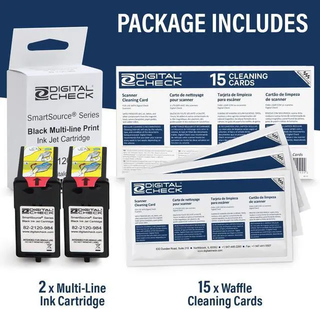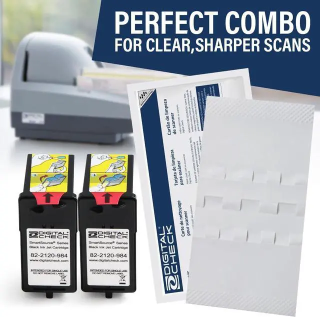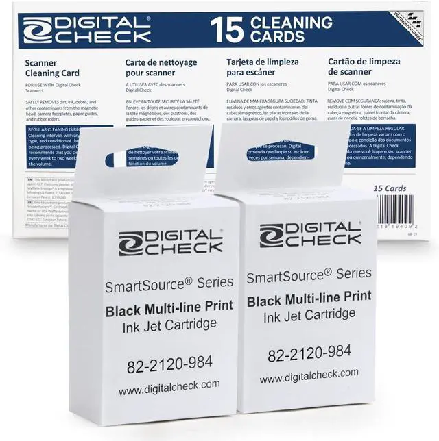 Ink Cartridge Bundle with 2 Black Multi-Line Print 82-2120-984 and 15 Scanner Cleaning Cards and Sheets, Ideal Bundle for Businesses Needing Reliable Genuine MS0083 Ink Cartridges: This bundle includes 2 authentic MS0083 ink cartridges engineered to provide sharp, consistent and reliable printer ink output for all your printing needs. Designed specifically for printers, these cartridges ensure that every you print meets professional standards with clear, fade resistant ink. 15 Cleaning Cards & Sheets: Included with the ink cartridges are 15 premium scanner cleaning cards and scanner cleaning sheets, carefully selected to cover a variety of cleaning needs. This includes Epson scanner cleaning sheets, Panini scanner cleaning cards and cleaning cards, all formulated to safely clean your scanners by removing dust, dirt and residue buildup. Card & Scanner Cleaning: This bundle also includes a card reader cleaning card alongside scanner cleaning cards specifically designed for maintaining scanners used for deposits and card readers. These cleaning tools are essential for businesses processing high volumes of s, reduce equipment wear and tear, and prevent operational downtime caused by dirty or malfunctioning scanners. Improve Performance: Combining two MS0083 ink cartridges with a comprehensive set of 15 cleaning cards and sheets, this bundle supports not only superior printer ink flow but also the thorough cleaning. This ensures your systems operate at peak performance, reducing workflow interruptions and providing a seamless experience in printing and scanning. Broad Compatibility: This bundle is compatible with a wide range of devices, including printers and scanners, Epson scanners, Panini scanners and multiple card reader models. Whether youre cleaning your scanner for deposits or replenishing your printing ink, this comprehensive set delivers everything needed to maintain your hardware in optimal condition. Genuine MS0083 Ink Cartridges: This bundle includes 2 authentic MS0083 ink cartridges engineered to provide sharp, consistent and reliable printer ink output for all your printing needs. Designed specifically for printers, these cartridges ensure that every you print meets professional standards with clear, fade resistant ink. 15 Cleaning Cards & Sheets: Included with the ink cartridges are 15 premium scanner cleaning cards and scanner cleaning sheets, carefully selected to cover a variety of cleaning needs. This includes Epson scanner cleaning sheets, Panini scanner cleaning cards and cleaning cards, all formulated to safely clean your scanners by removing dust, dirt and residue buildup. Card & Scanner Cleaning: This bundle also includes a card reader cleaning card alongside scanner cleaning cards specifically designed for maintaining scanners used for deposits and card readers. These cleaning tools are essential for businesses processing high volumes of s, reduce equipment wear and tear, and prevent operational downtime caused by dirty or malfunctioning scanners.