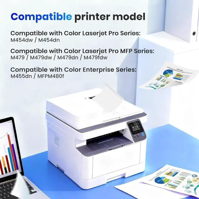 Compatible for Printer: Color Pro MFP M479fdw M479fdn M479dw M454dw M454dn, Color Pro M454Color Enterprise M479 M455dn, MFP M480f laser printer, replacement for hp m479fdw toner cartridges