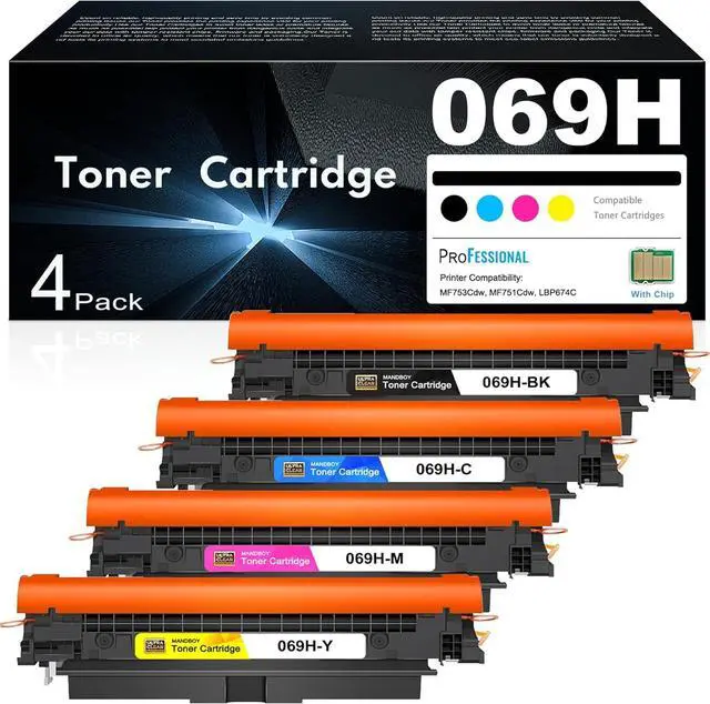 Package Contents: 1 x 069H black toner, 1 x 069H cyan toner, 1 x 069H yellow toner, 1 x 069H magenta toner (Total 4 Pack)