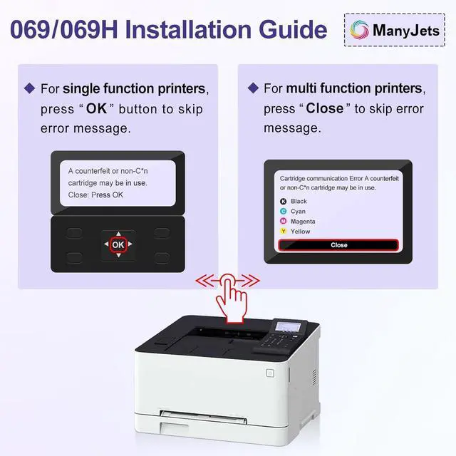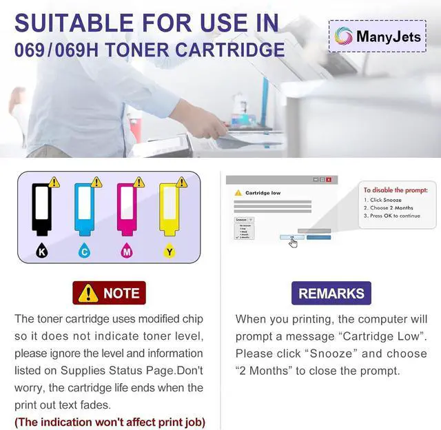 PACKAGE CONTENTS: ManyJets compatible 069 069H Toner cartridge set with chip replacement for Canon 069 CRG-069 toner cartridge(4-pack,NON-OEM)