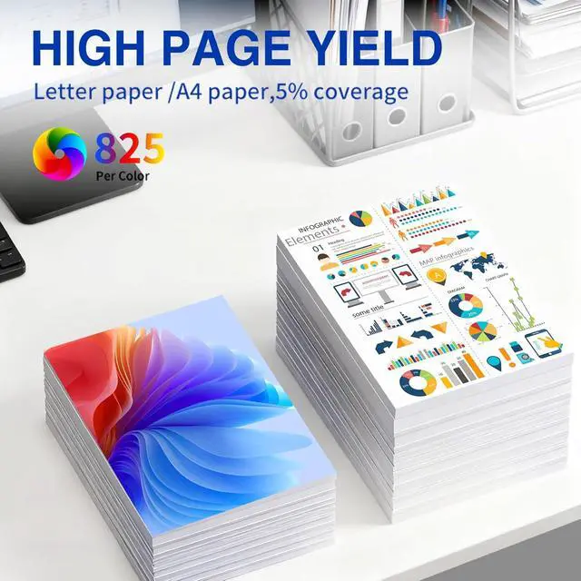 High Page Yield: Up to 8,25 pages per Color Ink cartridge (based on up to 5% coverage, A4 paper)