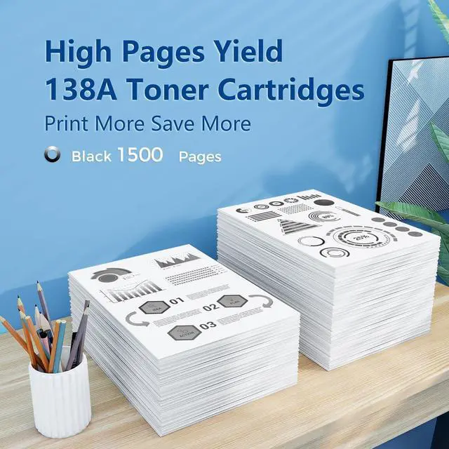 High Page Yield: UP to 1,500 pages per 138A toner black ink w1380a (Letter/A4, at 5% coverage)