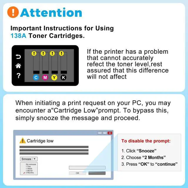 High Print Performance: 138 a toner with chip laser-precision imaging delivers sharp text, smudge-free graphics, and vibrant details