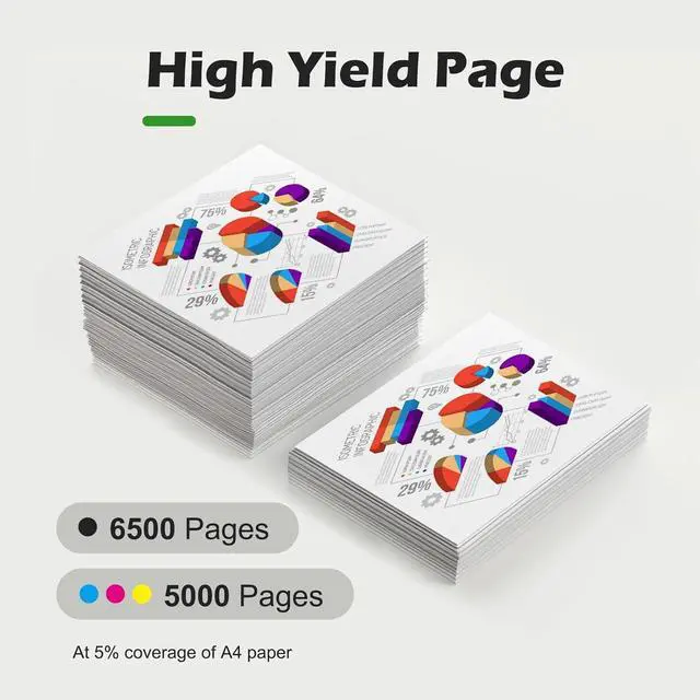 410X Super High Page Yield: 6500 pages per 410X black toner cartridge and 5000 pages per 410X color toner cartridge (at 5% coverage)