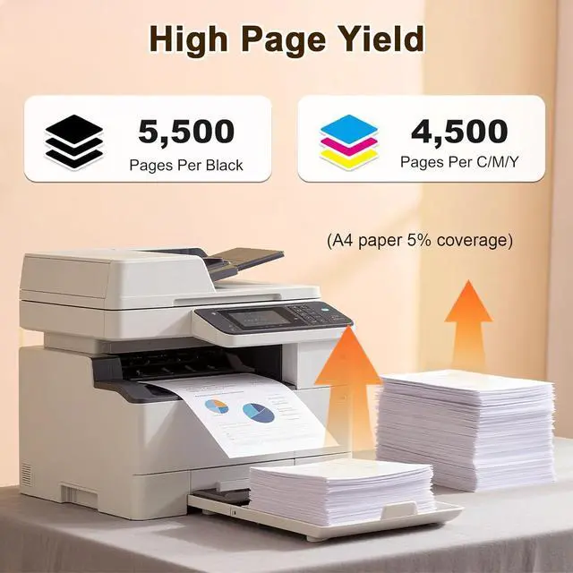 High Yield: The 212A W2120A W2121A W2122A W2123A toner cartridge has a capacity of approximately 5,500 pages per Black and 4,500 pages per Cyan / Magenta / Yellow (at 5% coverage on A4 paper), enhancing your printing efficiency