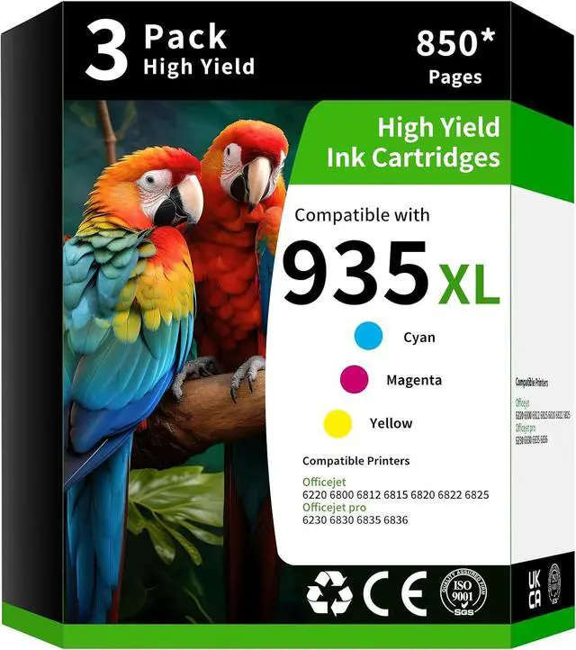 Package Contents: 3 Pack 935XL ink Cartridge Replacement for HP 935XL (1Cyan+1Magenta+1Yellow)