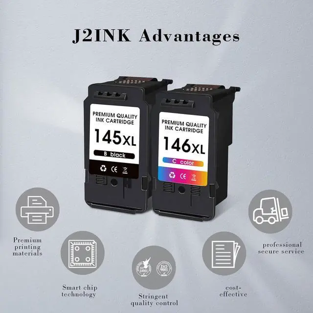 Package Content:J2INK Replacement for Canon PG-145XL & CL-146XL Ink Cartridges Combo Pack(for Canon PG-145XL Black Ink Cartridge × 1, CL-146XL Color Ink × 1 ,145/146 black/color Total 2 Pack),Non-OEM Cartridges