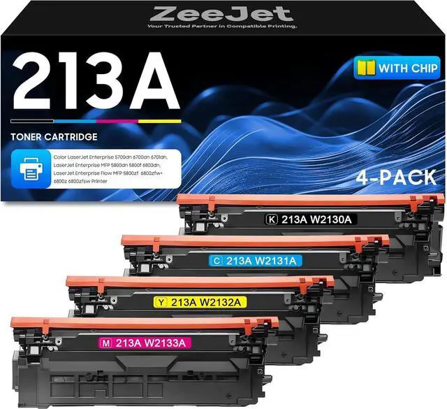 Product Name: Zeejet 213A Toner Cartridge Replacement for HP 213A 213X Toner Cartridge for LaserJet Enterprise 5700dn 5800 6700dn 6701dn Series Printer Ink 4-Pack W2130A W2131A W2132A W2133A