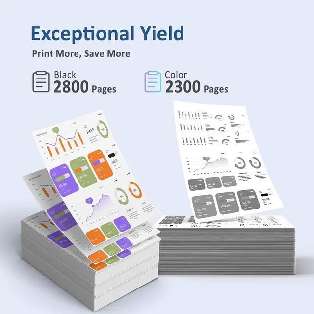 Page Yield: 2,800 pages (Black) and 2,300 pages (Cyan Magenta Yellow) at 5% coverage (Letter/A4) Compatible for 201X High Yield Toner Cartridges