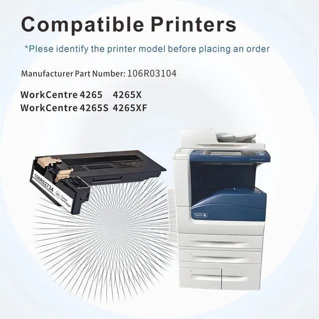 Compatible Printers: 106R03104 Black Toner Cartridge Works for WorkCentre 4265 4265X 4265S 4265XF Printers.