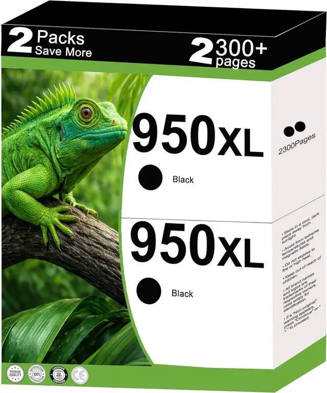 Convenient 2-Pack Combo Includes 2 high-capacity 950XL black ink cartridges, offering extended use and a reliable backup for daily printing needs.