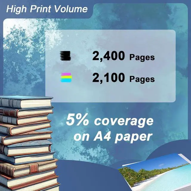 High Yield: 2,400 Pages per black Toner Cartridge,2,100 Pages per color Toner Cartridge(5% coverage on A4 paper)