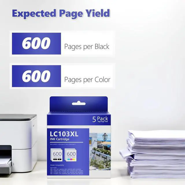 Pro-Grade Print Quality: Our newly upgraded LC103 XL ink cartridges delivers laser-sharp black text and vibrant, true-to-life colors. Achieve a professional finish on every page, for every project