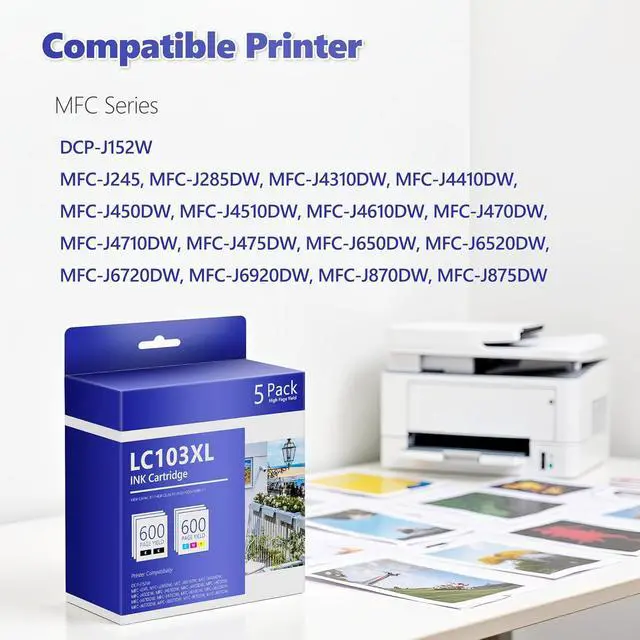Flawless LC103XL ink cartridge Compatibility: Engineered to work seamlessly with DCP-J152W, MFC-J245, MFC-J285DW, MFC-J4310DW, MFC-J4410DW, MFC-J450DW, MFC-J4510DW, MFC-J4610DW, MFC-J470DW, MFC-J4710DW, MFC-J475DW, MFC-J650DW, MFC-J6520DW, MFC-J6720DW, MFC-J6920DW, MFC-J870DW, MFC-J875DW Printers