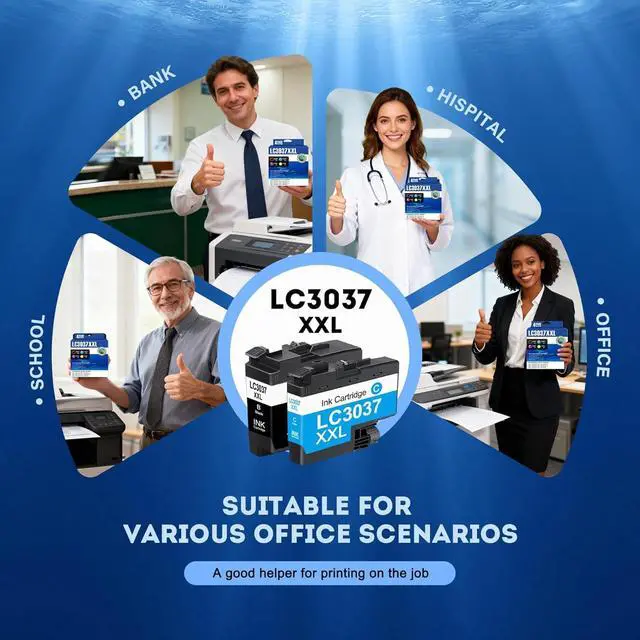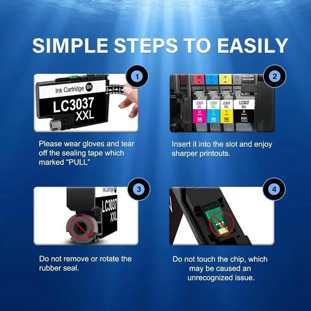 Package includes: 1 x LC3037 XXL Black Ink Cartridge, 1 x LC3037 XXL Cyan Ink Cartridge, 1 x LC3037 XXL Magenta Ink Cartridge, 1 x LC3037 XXL Yellow Ink Cartridge (Total 4 Pack) Sealed Package, Prevent Ink Leakage
