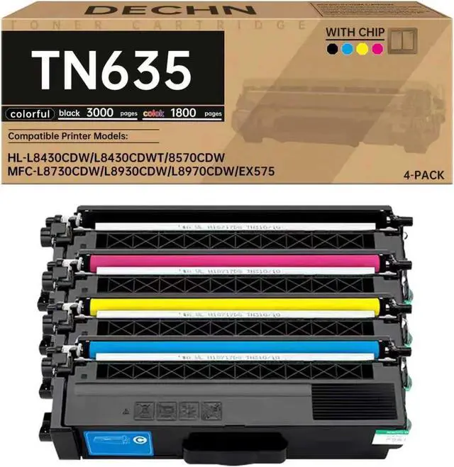 The package includes: 1 set of compatible with TN635 four-color Standard Capacity toner cartridges(with chips)