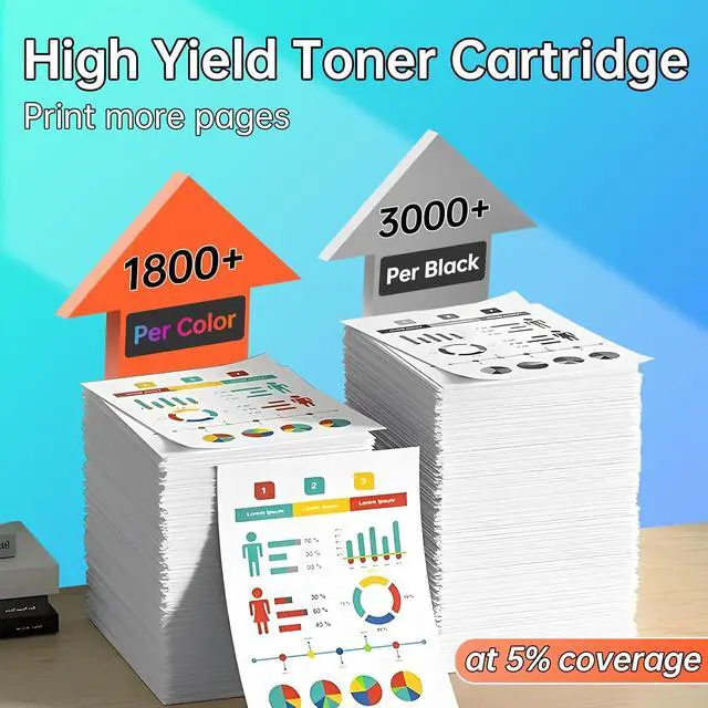 The TN635 standard-capacity black toner cartridge yields up to 3000 pages, and the color toner cartridges yield up to 1800 pages.calculated based on the official standard of 5% toner coverage on A4 paper