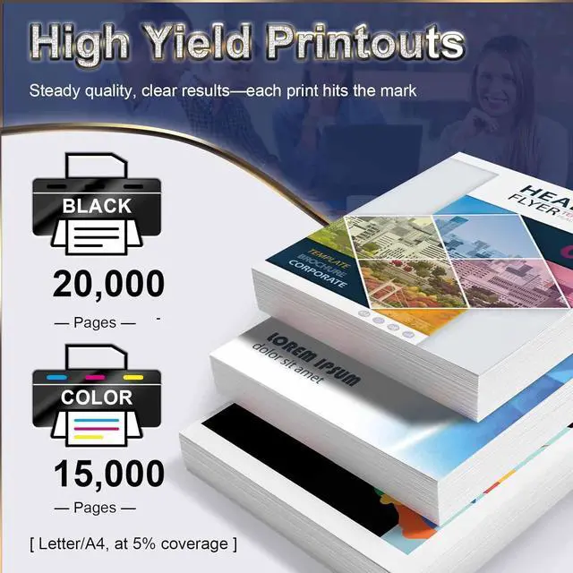 Print More, Change Less: Get up to 20,000 black pages and 15,000 color pages (5% coverage on A4 paper/letter) from a single toner cartridgeso you can stop switching cartridges and keep printing. Perfect for busy days