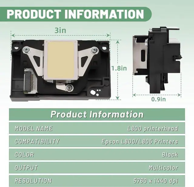 Wide Model CompatibilityThis printer head works as a reliable replacement for Epson L801 L800 L805 L850 T50 T60 R290 RX610 RX690 R300 R310 R330 R340 R350 and more.