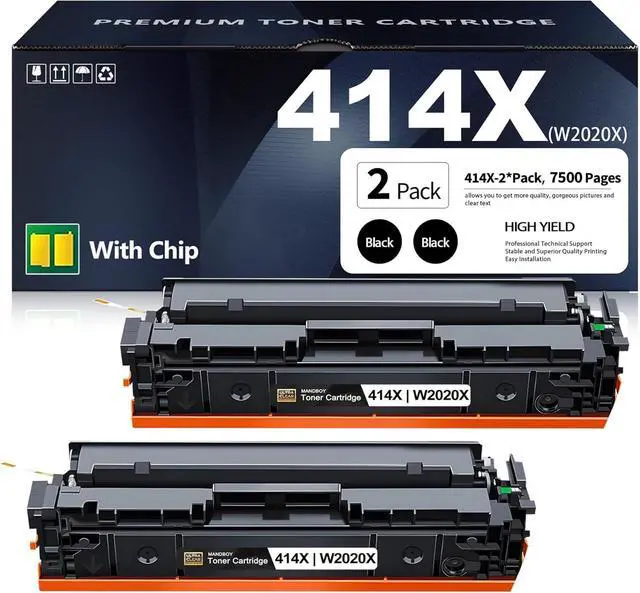 Includes: You will receive 2-Pack 414X W2020X black Toner Cartridge with Chip
