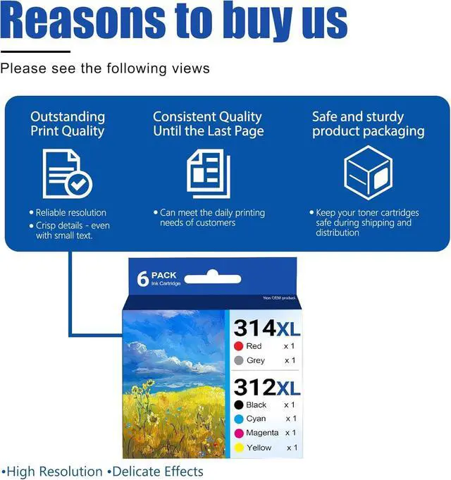 Our 312XL 314XL Ink Cartridge: High quality ink refill designed for strong compatibility to work seamlessly with your printers to be a vital part of your complete printing system