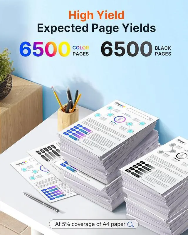 Page Yield: Black is 6,500 pages per TM436 toner cartridge and Color is 6,500 pages per toner cartridge at 5% coverage