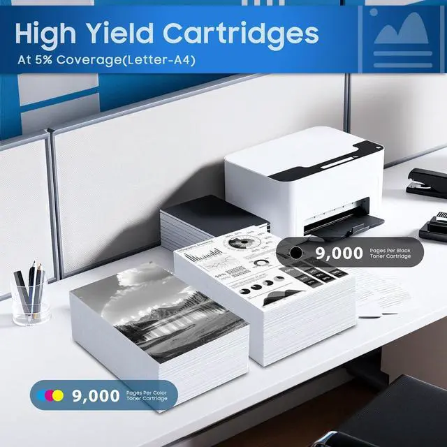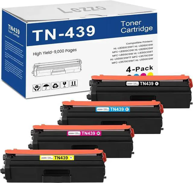 High Page Yield: TN439 Black Toner Cartridge can print 9,000 pages, and each TN439 color Toner Cartridge can print 9,000 pages