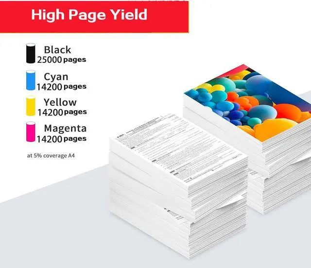 [Print Yield] Black cartridges deliver up to 25,000 pages, while color cartridges provide up to 14,200 pages (at 5% coverage on A4 paper)