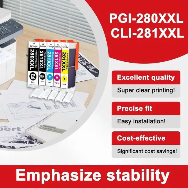 280 XXL 281 XXL Ink Features: Outstanding reliability, No clogging;smooth printing;hassle-free;premium quality;cost-effective;Easy to refill;saving time and money.