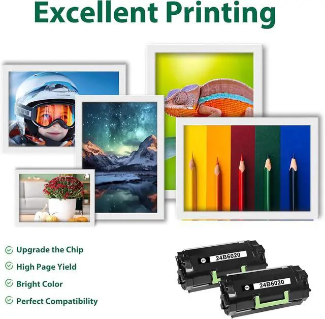 Remanufactured 24B6020 Toner Cartridge - 24B6020 toner cartridge with 2 pack (Black/24B6020), upgraded materials and chip bring the perfect printing experience