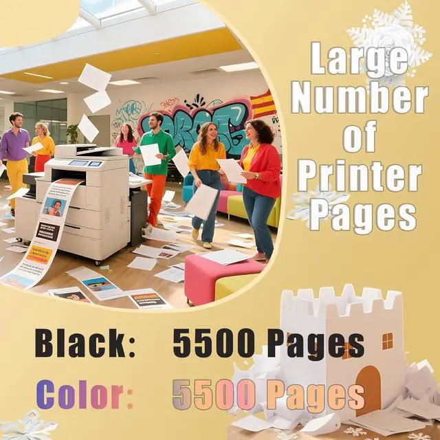 5500 pages of high print volume, economical and durable : A black single toner cartridge can print about 5500 pages,A color single toner cartridge can print about 5500 pages (5% coverage), reducing the cost of frequent replacement, suitable for high-load printing needs