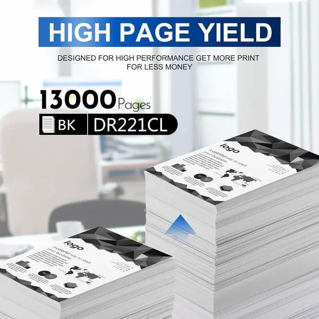 Page Yield: 13,000 pages per DR221CL Black Drum Unit at 5% coverage (Letter/A4).