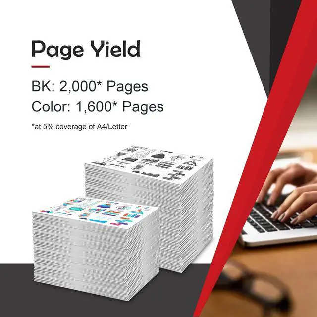 Impressive Page YieldAchieve up to 2,000 black pages and 1,600 color pages (A4, 5% coverage), reducing the frequency of cartridge replacements.