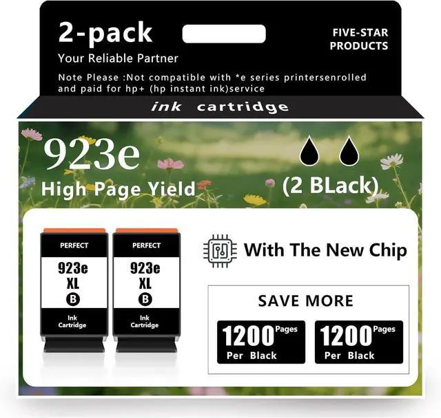 Latest chip: Our 923e/923xl black ink cartridges use the latest chip and are fully compatible with * e-series printers. E-Series printers that do not support registering and paying for HP+(HP Instant Ink) services are not supported. Please check before purchasing