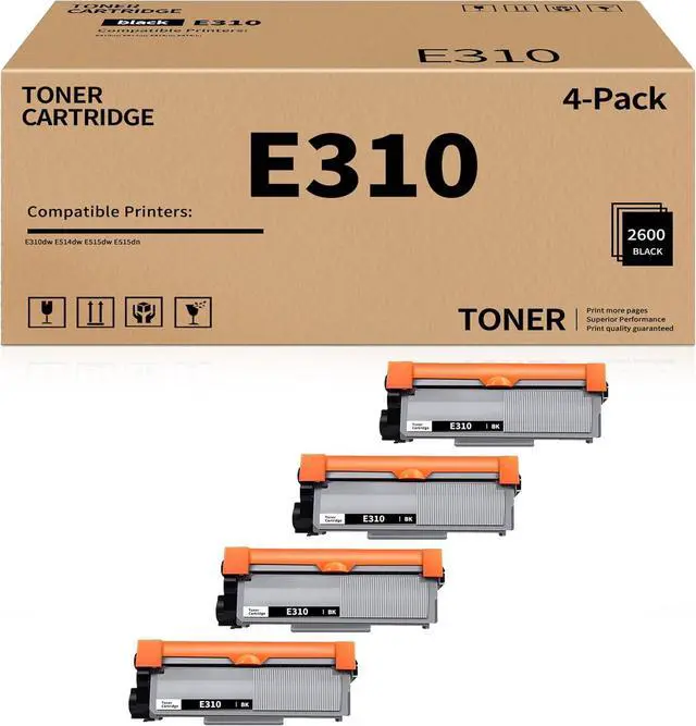 Package Contents: 4 Pack High Yield E310 Black Toner Cartridge Compatible Replacement for Dell E310 P7RMX PVTHG 593-BBKD