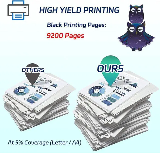 High print volume, efficient office: Our Toner Cartridges are designed for high print volume, reducing the frequency of replacement, and greatly improving office efficiency. Whether it is large-scale document printing or daily office needs, our Toner Cartridges can do the job. Black(BK/K) print pages: 9200 pages (5% coverage on A4 paper)