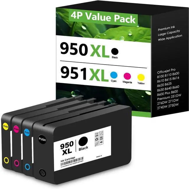 Package Contents: 1 × 950XL Black,1 × 951XL Cyan,1 × 951XL Yellow,1 × 951XL Magenta Ink Cartridges