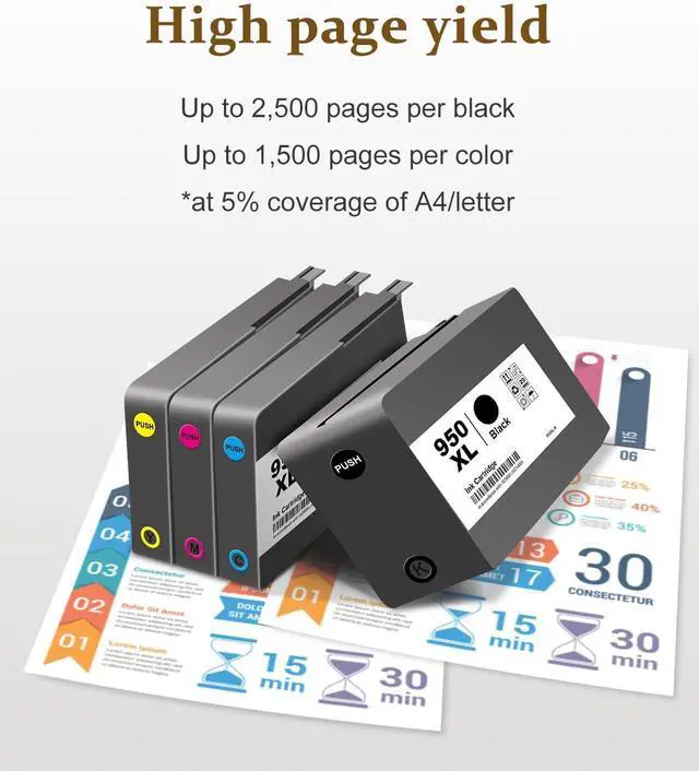 Easy to Install: Suitable for the 950xl ink cartridges, the combo pack of 950xl and 951 ink cartridges offers an installation that is effortless, simple and intuitive, making it a breeze to replace the cartridges in your printer