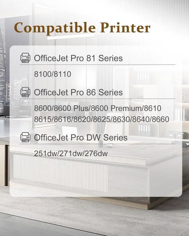 Compatible printers: Officejet Pro 8100 8110 8600 8610 8615 8616 8620 8625 8630 8640 8660 8600 Plus 8600 Premium 251DW 276DW 271DW Printers