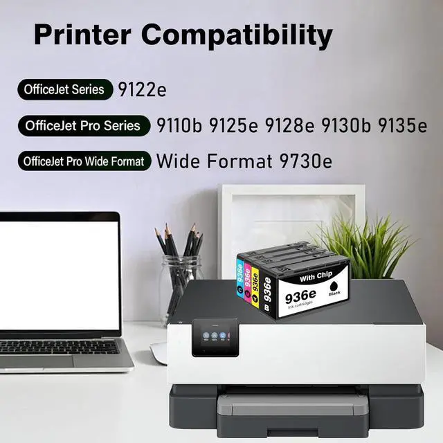 Printer Compatibility: 936e ink for hp936 ink cartridges 4 pack high yield Compatible for hp officejet pro 9730e ink cartridges 9135e 9128e 9130b 9110b 9122e 9125e 9120e printer