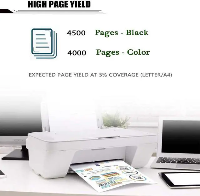 High-Quality: High-quality Toner Cartridge Provide High-Quality Printing. Black 4500 pages, color 4000 pages each (A4 paper 5% coverage rate)